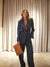 - Giacca monopetto con bottone rivestito , particolare pantalone con fondo ampio e spacco sul davanti